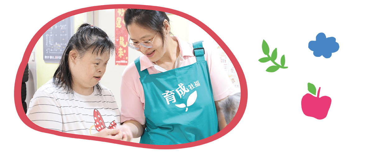《育成社福》更建立專業照顧團隊,以「個別化」支持計畫為核心,為每位老憨兒量身設計照顧模式,讓他們在快速老化的身體中,仍能感受到被愛與被關懷的溫度。