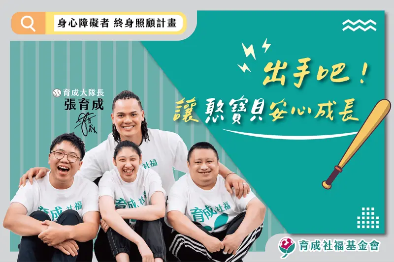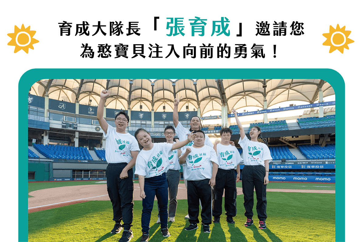 ★ 憨寶貝每個人生階段,都需要社會的陪伴與支持,育成大隊長––張育成邀請您攜手應援,讓專業服務不斷線,為憨寶貝築起能安心生活、持續發光的未來!
