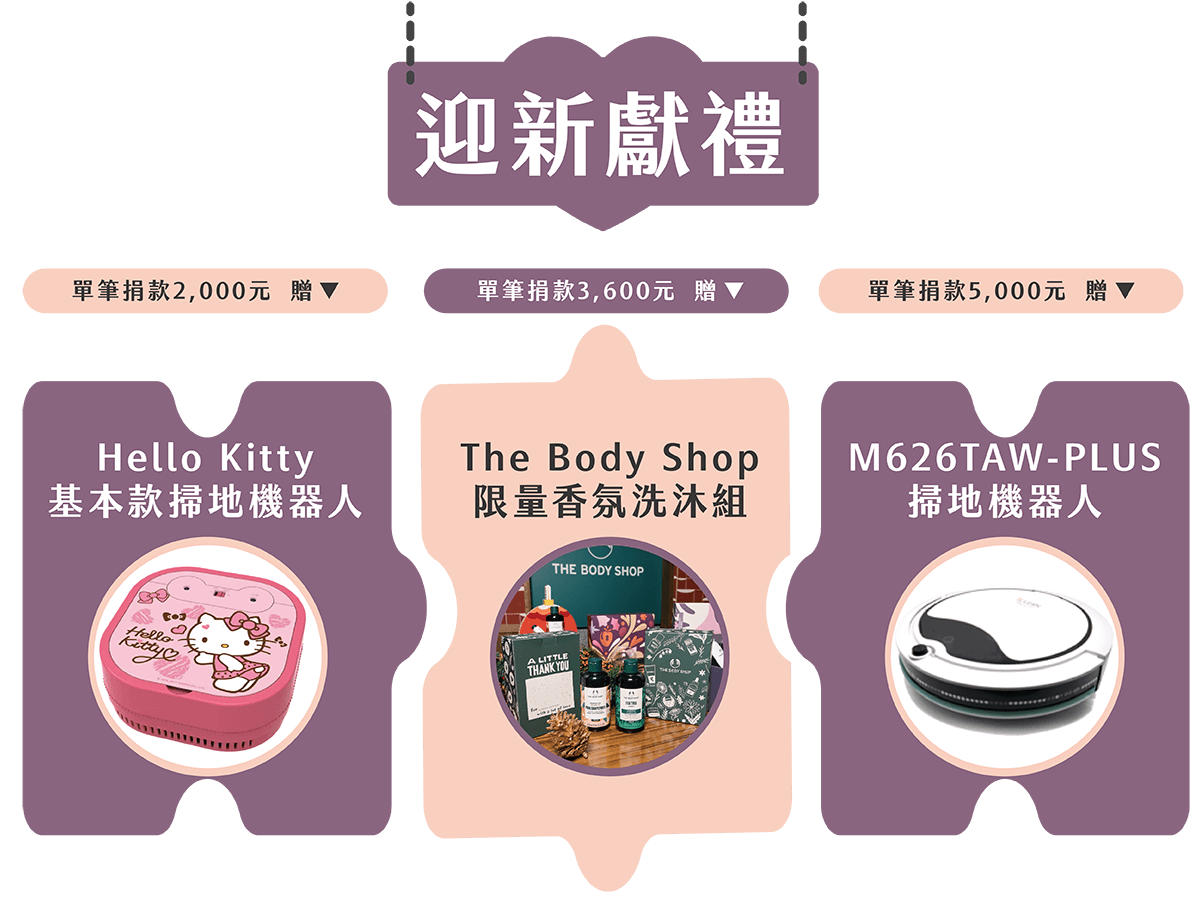 - 本專案捐款贈禮將分批於3、5、8月底陸續寄出,且恕不累贈,敬請見諒。