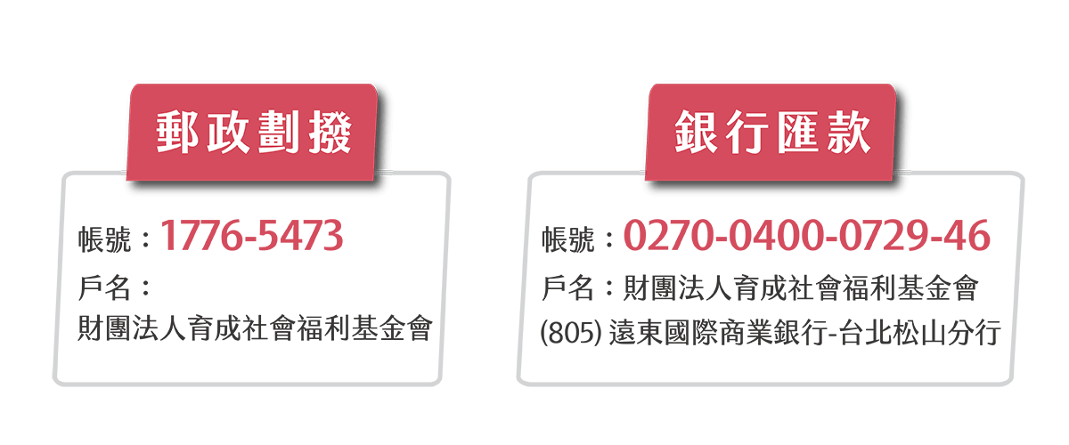 - 本活動乃公益募款,將由《育成社福基金會》開立捐款收據,僅適用於台灣地區。